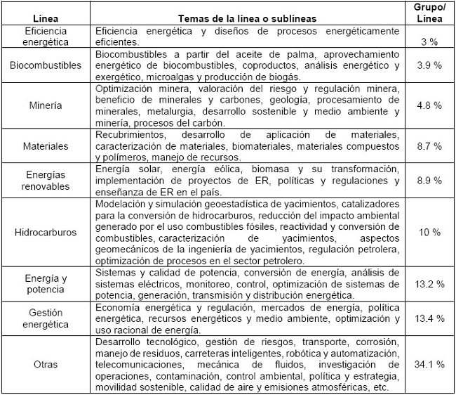 Estado de la investigación en energía en Colombia: una mirada desde los grupos de investigación