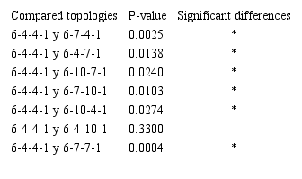 According to the previous result and the similarity in the order of the mean square error for each topology, it was concluded that it was necessary to perform the Friedman test to determine if there were statistically significant differences for each configuration.