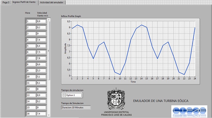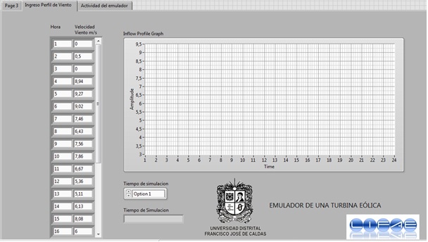 One of the options to test the operation of the emulator is to load a wind profile from a specific place for watching its behavior for different wind speeds at different times. It should be noted that speeds below 3 m/s do not allow an adequate operation of the emulator. This is because the power generated is negligible.