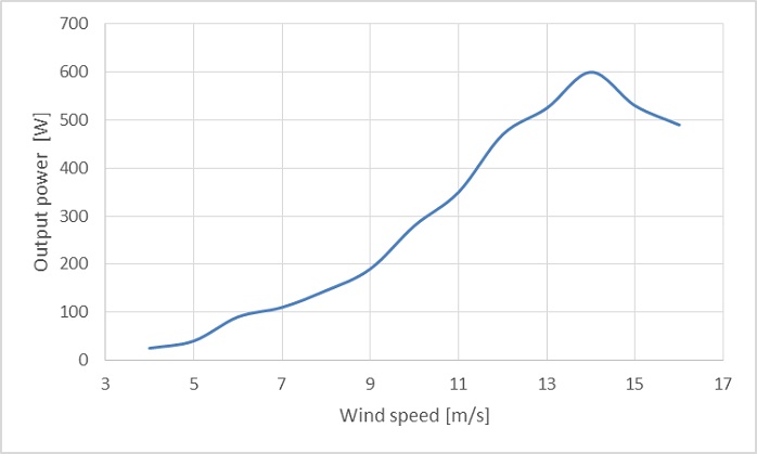 The chosen turbine was the Eolos 600 W, whose power vs wind speed curve is shown in Fig. 4.