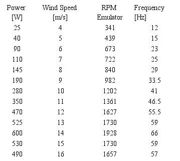 Such a turbine to be emulated was selected, among other things, because of the speed range it offers power generation (between 3 m/s and 14 m/s), being this the range in which wind turbines with architectural integration as well as and wind turbines operate. In addition to this, it was selected because the generator of this equipment is very similar in its construction to that of the generator used for the emulator.