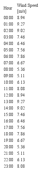 To enter the wind profile into the program, data with the coordinates of the place of interest were extracted from NASA’s online database called Atmospheric Science Data Centre. The monthly average delivered by the atmospheric service is repeated so that it can be adjusted to the input times given in the Labview interface. The extracted data can be seen in Table 4. In addition to this, such data were entered as seen in Table 5.