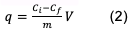 Where Ci and Cf are the concentrations at the entrance and exit of the column in mg/L, q is the adsorption capacity in mg/g, V is the volume in L and m the amount of adsorbent in g.