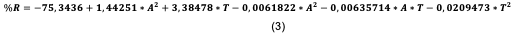 Likewise, applying the RSM resulted in the regression equation that adjusts the data obtained, as follows: