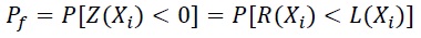 Cuando Z es menor que cero, la falla de fondo ocurre. El fin del análisis de confiabilidad es asegurar la seguridad y esta solamente puede obtenerse en términos de la probabilidad de falla, tal como se presenta en la ecuación (2).