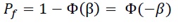 Donde () es la distribución estándar normal y β es un parámetro útil para caracterizar el grado de seguridad, llamado índice de confiabilidad, ecuación (4).