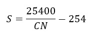 Where the runoff (Q) is a function of the rain sheet (P) and the maximum infiltration potential (S), expressed in millimeters. Potential infiltration depends on the cover conditions and soil type, estimated with the CN using equation (2). The CN has values that vary from 0 to 100, indicating the damage percentage to the infiltration process.