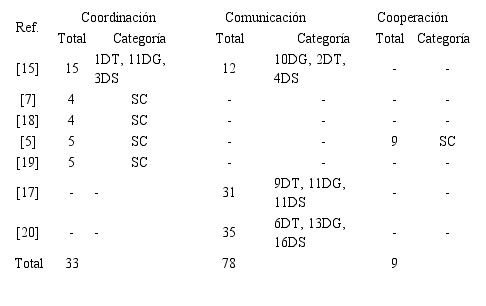 Verner et al. [21] afirman que la distancia incrementa los problemas de coordinación y cooperación: a medida que aquella aumenta, se intensifica el impacto negativo en la comunicación, lo que afecta indirectamente la efectividad de las dimensiones de coordinación y cooperación. Por ello, es posible advertir en estas un mayor número de riesgos, como se ilustra en la Tabla 1. Por último, la cooperación es una de las dimensiones menos investigadas, puesto que en la literatura se hallaron muy pocos riesgos asociados con esta.