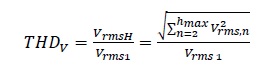 (2)The two first terms of Vload represent the voltage drop caused by the fundamental component of the load current, while the third term represents the voltage drop caused by the harmonic components of the load current. Therefore, any device connected to the load bus will be supplied by a voltage with harmonic distortion. The difference or total deviation of a distorted waveform from the fundamental component is calculated with a harmonic distortion factor. Equation (3) reports the voltage THD. This factor will be used to indicate the harmonic content in the analyzed voltage.