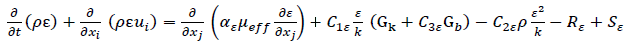 Due to the existence of curves in the studied model, the epsilon RNG kappa model is used. In equation 5 the turbulence model for kappa kinetic energy is presented.