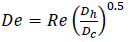 Within the calculation of helical tubes, centrifugal forces that influence the calculation factors are generated [24], specifically the Reynolds number, therefore, a relationship must be found to correct the deviation that exists due to the aforementioned forces. This relationship is called Dean's number and is obtained through equation 7.