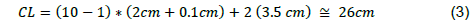 Considering the number of electrodes (10), their thickness (0.1 cm), the largest distance between electrodes to be used (2 cm), and the distance between the first and last electrode on the front and back walls of the cell respectively (3.5 cm).