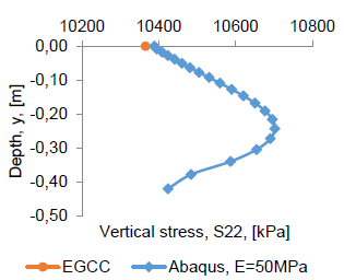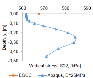 Table 9, the values from the analytical methods closest to the numerical ones are those obtained using the APM method. This method resulted in a difference between 38 and 49 kPa, followed by the Terzaghi method with a difference between 227 and 1019 kPa, and finally the imaginary foundation method with results which are further from those found using Abaqus.
