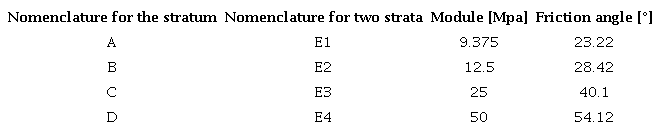 The analysis of two strata while taking into account the Drucker Prager criterion are shown in Table 8 to Table 11 and are composed of soils 1, 2, and 3.