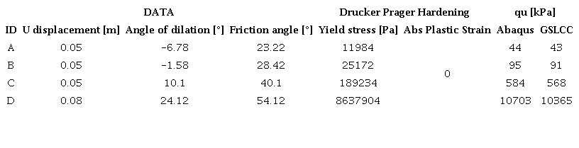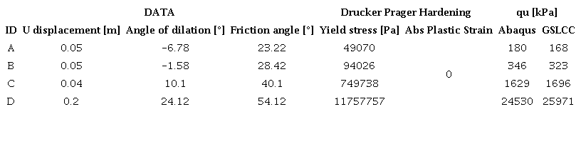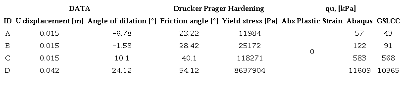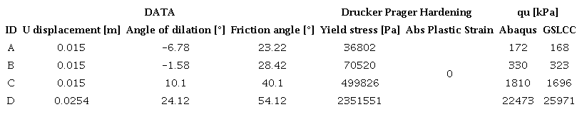 To create the Drucker Prager elastoplastic model in the finite element program, the following input variables are needed as shown in Table 2.