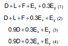 Where: D: effects generated by dead loads (own weight of all structural elements), L: effects generated by live loads, F: load due to the weight of the stored fluid, with precise knowledge of the pressure and maximum height of the same, E: Effects generated by seismic action.