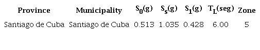 The simplified model is based on the equivalent mechanical system (mass-spring) established in API 650 (2013), for which a spreadsheet is elaborated and supported in Excel with the formulations described in the code mentioned above. Thus, obtaining the tank response parameters quickly and safely by reducing the computation time and calculation errors. In the calculations performed, the following considerations are taken into account: (1) the parameters that characterize the seismic hazard are those corresponding to the province and municipality of Santiago de Cuba, according to table 1; (2) it is considered a response reduction factor equal to two for the convective mode and four for the impulsive mode; (3) the importance coefficient is equal to one; (4) the damping value for the convective and impulsive modes is 0.5 %, and 5 % respectively.