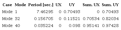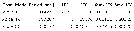 Based on these results, it is possible to conclude that the convective and impulsive modes together account for more than 80 % of the total mass of the fluid, which shows that the response of the tanks is associated with the influence of the impulsive and convective modes of the fluid.