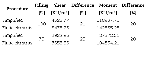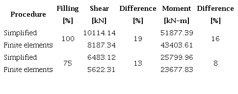 The stresses obtained through the simplified dynamic analysis correspond to tangential tensile and axial compression stresses, determined in the lower part of the wall of the tanks under study, where their effects are considered more significant. Then, by performing a more complex analysis based on finite elements, it is possible to obtain a similar level of response by the applied analysis methods. Table 7 shows a comparison between the procedures applied, showing that the differences achieved are less than 25%, which are considered acceptable.