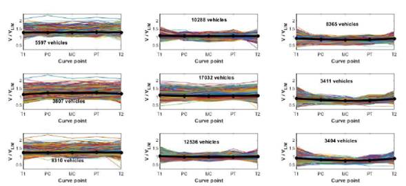 Table 1 demonstrates that the geometric curve parameters and speed records are over-dispersed (i.e. the variance is higher than the average), as expected in real data used on traffic analysis (e.g. [24], [25]) and the first approximation of information analysis involves data reduction or pooling arrangements using preliminary patterns or trends.