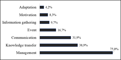 Continuing with the activities that contribute to an ASD team becoming productive, it is evidenced that Management is the most recurrent option by professionals with 75% (See Figure 6), which agrees with the information obtained in the literature and is related to processes such as planning, organization (Work assignment), execution (Coordination), and evaluation. Another similarity is that they consider communication within the team as a fundamental pillar to increase productivity.