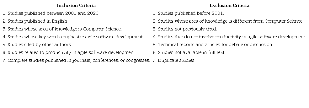 3) Selection criteria: Inclusion and Exclusion. To select the studies, the criteria set out in Table 2 are considered.
