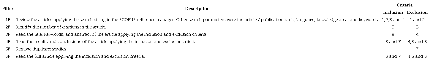 4) Abstract and Keyword Review. The classification scheme was based on the application of the inclusion and exclusion criteria, and the filters in Table 3 that allowed the selection of studies. Figure 3 shows the results obtained.
