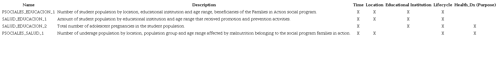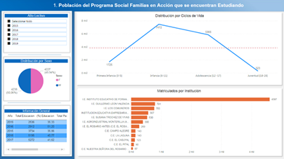In Colombia, the municipalities have in their administration different undersecretariats or portfolios for the management and fulfillment of the objectives to be developed by their elected representative, these are executed through the development or government plan. Each portfolio must have relevant information for decision-making and generation of impact projects for the population of the municipality, being the contexts of education, health, and social programs primary sources of information to generate management indicators that define part of the situational status of a specific population or population group. These are also determining factors in the social transformation and analysis of indicators of progress in overcoming poverty, improving the conditions of the vulnerable population, schooling, improving the population's health conditions, among others.