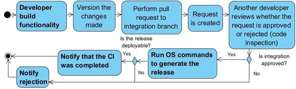 The practice of continuous integration (CI) goes hand in hand with versioning, according to [13]. Although versioning helps to centralize changes, maintain order, and trace the evolution of the system being developed, it does not allow verifying the impact of the changes generated on the deployable unit. Due to the above and following [14], it is advisable to adopt the practice of continuous integration that can validate this as part of the organizational culture.