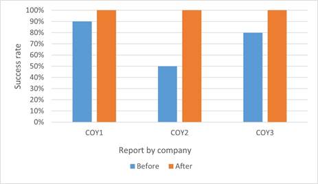 Three companies were selected to review the impact of implementing the suggested practices. For confidentiality reasons, they will be called COY1, COY2, and COY3