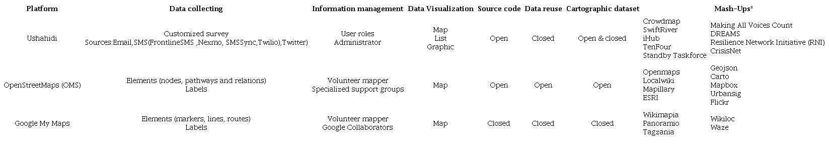 Crowdmapping projects have been developed on pioneering platforms that are still in use today. Next, there is a description of the process of three platforms that in terms of implementation have been the most used.