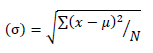 Where σ represents the standard deviation, Σ denotes the sum of the values, x represents each value in the data set, μ represents the mean (average) of the data set, and N represents the total number of data points.