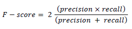 The F-Score measure defines the percentage of hits globally over the dataset. This measure represents the harmonic mean of the precision and the recall of the classifier over the dataset [12]. The calculation is given in Equation (4).