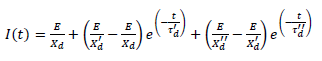 The SSC test is currently the preferred method of testing SMs due to three main reasons: 1) commercially, it is a classical test used for acceptance, performance testing, and parameter determination for dynamic analysis, and is performed by the factory as part of the technical information [24]. 2) The test provides sufficient information for the model with lower parametrization ( 𝑋 𝑑 ′ , 𝑋 𝑑 ′′ , 𝜏 𝑑 ′ and 𝜏 𝑑 ′′ ) as given by (12). 3) It provides accurate results for the behavior of the first electromagnetic oscillation. In [24], presents the short circuit function (built empirically) for the computation of the three-phase short-circuit failure of the synchronous generator with no load, which is expressed as: