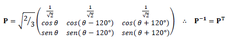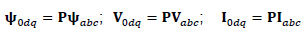 Park's transformation matrix is orthogonal, meaning that its inverse is equal to its transpose, i.e., P-1 = PT. This property ensures that the total power is conserved during the transformation. The angle θ represents a fixed phase shift between the abc and dq reference frames at the time of transformation at t = tx at which the transformation is made. This angle is given by θx = ωtx and is constant because ω is constant. The Park transformation for the fluxes, tensions and currents of the machine are