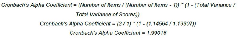 The Cronbach's Alpha coefficient for these data was 1.99016, indicating high internal consistency within the set of items. It is important to note that this value is above the normalized range of 0 to 1 due to the high consistency found in the data.