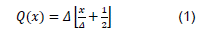 It was taken as a base, where the operator [. ] returns the largest integer, which is less than or equal to its argument. The Δ step is commonly referred to as the least significant bit (LSB) since a change in the input signal of one step at the most will generate a change in the LSB of the binary code of the output [2]. The transfer function of the scalar quantizer is shown in Figure 1.