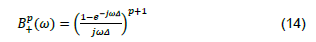 These splines have compact support only when p is an integer, resulting into basic splines [34]. Because the support belongs to ℝ+, these splines are called causal. In this paper we are only interested in positive and centered B-splines because we need to represent a probability density function of a random variable or Dither. The centered B-spline and its Fourier transform are expressed as: