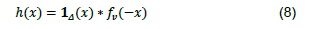 where 𝐹𝑣 is the Fourier transform of 𝑓𝑣, and sinc(x)=sin(x)/x. To sum up, a NSD quantizer with a Dither signal with PDF 𝑓𝑣(𝑣) is equivalent to a probabilistic quantizer with mapping ℎ(𝑥). And the necessary relationship between ℎ(𝑥) and 𝑓𝑣(𝑣) in the time domain is defined by ([eq_relation]) and its equivalent in the frequency domain by (9).