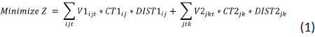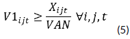 V1ijt= Number of trips made by the truck from hatcheries i to broiler farms j at time t.