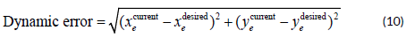 The dynamic error is calculated at each frame as the Euclidean distance between the current end-effector position and the desired position: