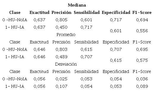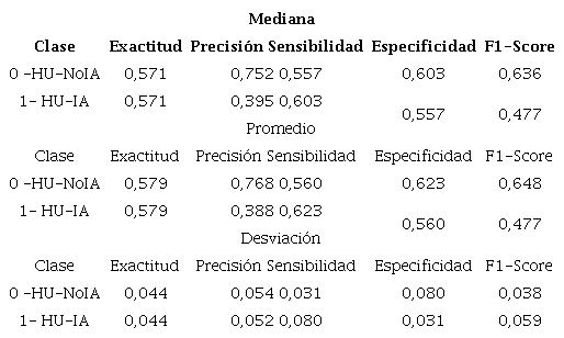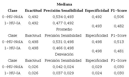 De acuerdo con lo anterior, los resultados obtenidos para ChatGPT4o revelaron un desempeño general bajo (ver Tabla 3). Las métricas medianas y promedios para la clase HU-NoIA representa que las historias de usuario clasificadas mostraron valores apenas superiores al 50 %. La exactitud y la especificidad fueron consistentemente bajas, con una precisión media de 0,531 para la clase HU-NoIA y 0,466 para la HU-IA, lo que sugirió una alta tasa de falsos positivos.