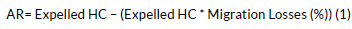 Once the values of the expelled hydrocarbon volumes are obtained, it is necessary to obtain the hydrocarbons available for trapping. Hydrocarbon trapping is a highly inefficient process, with two factors responsible for most losses: (1) retention of oil in source rocks; (2) dispersion during migration [10,11]. Globally, it is typically observed that only 2% of the total volume of the generated liquid hydrocarbons remains in traps on average, and 98% is lost in processes such as retention in source rocks (45%), dispersion during migration (13%), and escape to the surface (40%) [12]. However, each basin or pod of active source rocks has its own indicators and in prolific basins like the Maracaibo Basin in Venezuela it could be up to 12% [13, 14]. According to this model, the volume of expelled hydrocarbons is multiplied by a factor known as Migration Losses (%) [11] to obtain the total gas and oil available for trapping. In this process, hydrocarbon molecules experience losses when they are unable to ascend due to their dissolution in the rock's water content or their attachment to the rock's granular structure. This phenomenon tends to affect gas more significantly than oil. Such losses can be considerable, especially over extended migration paths, which can make certain source rock hydrocarbons impractical for extraction [11]. The migration loss is a parameter difficult to calculate and is the one with the highest degree of uncertainty to the final calculation. Based on regional basin modeling, this parameter was proposed for each evaluated basin. Equation 1 [7] is used to calculate the Available Resources (AR):