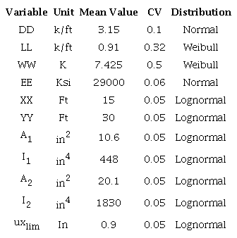 The random variables of the problem are described by their statistical parameters in Table 1.