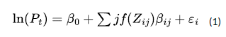 f(Zij) is the function applied to the attribute j for coffee i. This function can be an identity function, a logarithm function, or a dummy variable (1 if the attribute j is present for the i-th observation, or 0 otherwise).