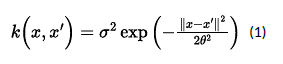 . In supervised learning, the radial basis kernel (RBF) is commonly employed as the covariance function, and is given by: