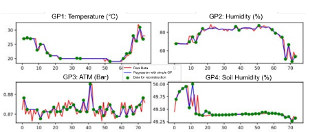Keywords: Data processing, dimensionality reduction, Multiple Output Gaussian Processes (MOGP), resource optimization, supervised learning, Wireless Sensor Networks (WSN).