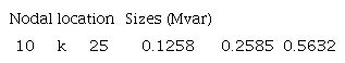 The mathematical formulation for the studied problem can be categorized as a mixed-integer nonlinear programming (MINLP) model. Its integer variables correspond to the selection of nodes for the installation of reactive power compensators, while its continuous variables relate to the power flow equations [10].