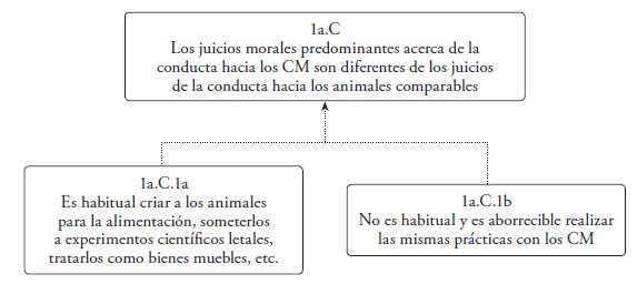 (1a.C) Los juicios morales predominantes acerca de la conducta hacia los CM son diferentes de los juicios sobre la conducta hacia los animales comparables.
