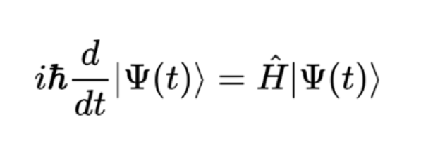 en donde no solamente encontramos la introducción de un espacio de Hilbert que representa un vector de espacio abstracto n-dimensional, sino también de números irracionales, i, que facilitan la resolución de la ecuación. La ecuación de Schrödinger describe exitosamente la función de onda de un sistema físico en mecánica cuántica, tales como la evolución de la conducta de un electrón en el tiempo.